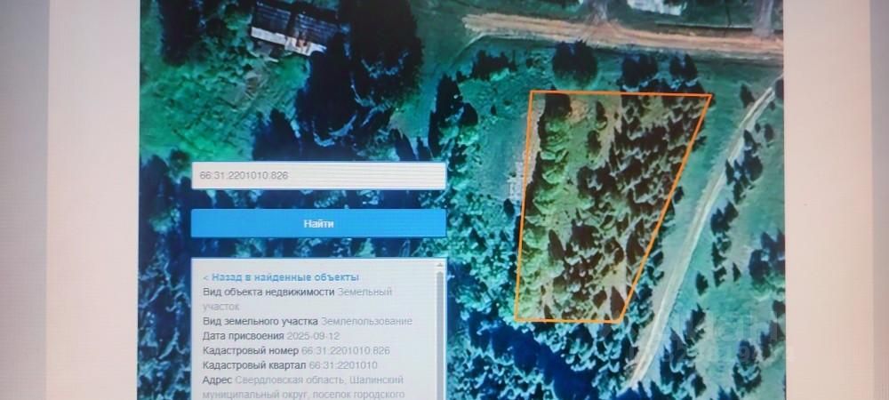 Лот 4 земельный участок с разрешенным использованием: для ведения личного подсобного хозяйства (приусадебный земельный участок), с кадастровым номером 66:31:2201010:826, общей площадью 1632,00 кв.м., адрес: Свердловская область, Шалинский муниципальный округ, поселок городского типа Шаля, улица Безводников, земельный участок 1В.