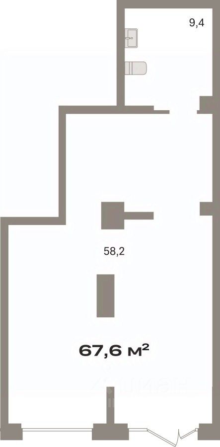 Помещение свободного назначения на 1 этаже, общая площадь 67.58 кв.м., без отделки. Стоимость помещения 14,770,000 руб., цена за кв.м 218,555 руб.