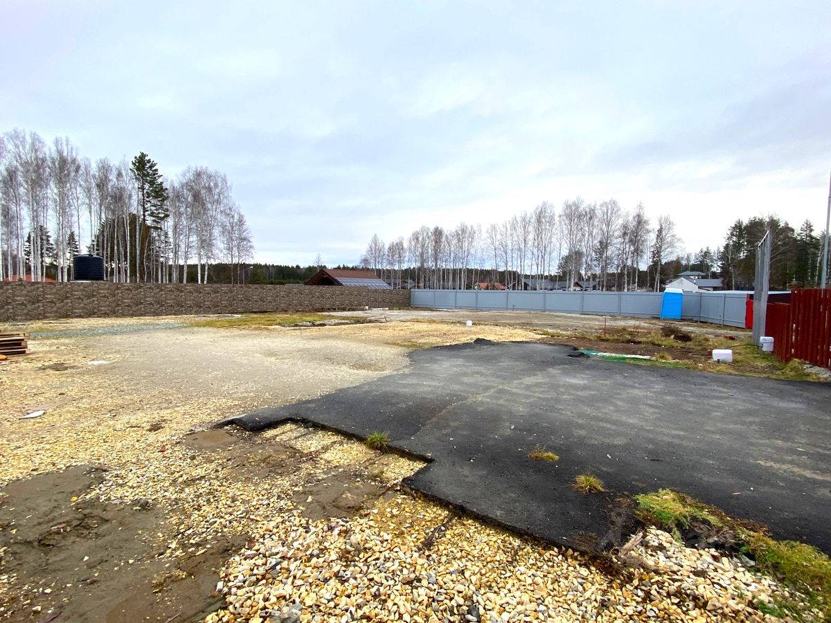 Участок без деревьев, осыпан (скала - крупная фракция/средняя фракция и мелкий гравий) и выровнен. Есть скважина и септик. Электричество - два подключения по 15кВт.
