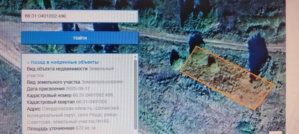 Лот 2 земельный участок с разрешенным использованием: для индивидуального жилищного строительства, с кадастровым номером 66:31:0401002:496, общей площадью 672,00 кв.м., адрес: Свердловская область, Шалинский муниципальный округ, село Роща, улица Советская, земельный участок 18Б.