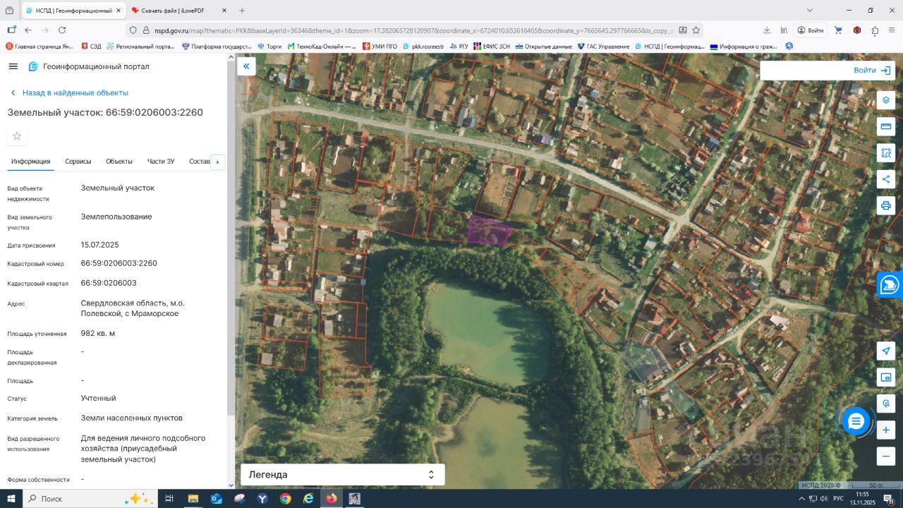 Продажа земельного участка, расположенного по адресу: Свердловская область, Полевской муниципальный округ, село Мраморское, с кадастровым номером 66:59:0206003:2260, площадью 982 кв.м, категория земель земли населенных пунктов, с видом разрешенного использования для ведения личного подсобного хозяйства (приусадебный участок)
