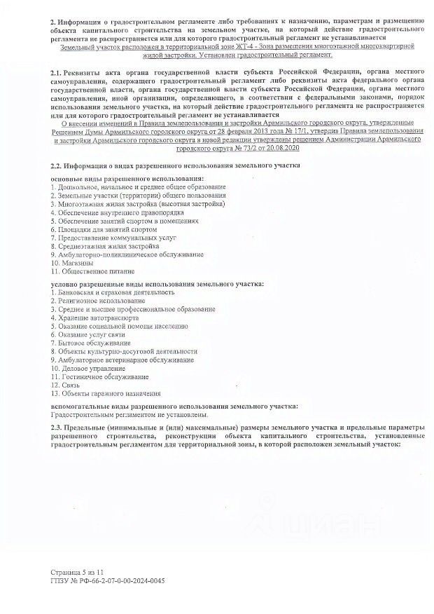 Продам 4 соток земельного участка под строительство объекта коммерческого назначения. Участок можно увеличить до 10,5 соток. Со списком разрешенного использования можно ознакомиться на фото страницы из ГПЗУ. Большой выбор разрешенного использования данного земельного участка кад. 66:33:0101003:211. Согласно ГПЗУ, разрешено 24 вида использования (основные и условно-разрешенные). Из них вы сами самостоятельно можете выбрать самый прибыльный для вас. Если для предприимчивых предпринимателей не подходит не один из этих 24 ВРИ, то для таковых проблемы нет! Для экономии ваших средств проведены первоочередные работы: вырубка деревьев, корчевание пней, выравнивание территории, вывоз мусора. Зима — лучший период для выгодной покупки и прохождения всех согласований, чтобы с первым теплом приступить к строительству. Электричество по границе участка. Возможность подключения к газу и воде. Адрес участка: г. Арамиль, микрорайон Гарнизон, ул. Космонавтов, 9/4, на 1 км. при въезде в город с Челябинского тракта. Собственник. Чистые документы. Вся информация прозрачна.