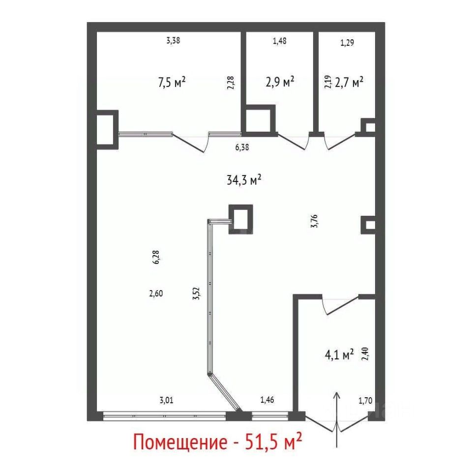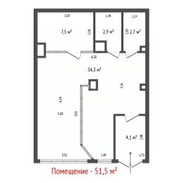 Площадь: 51,5 м2, кабинетная планировка