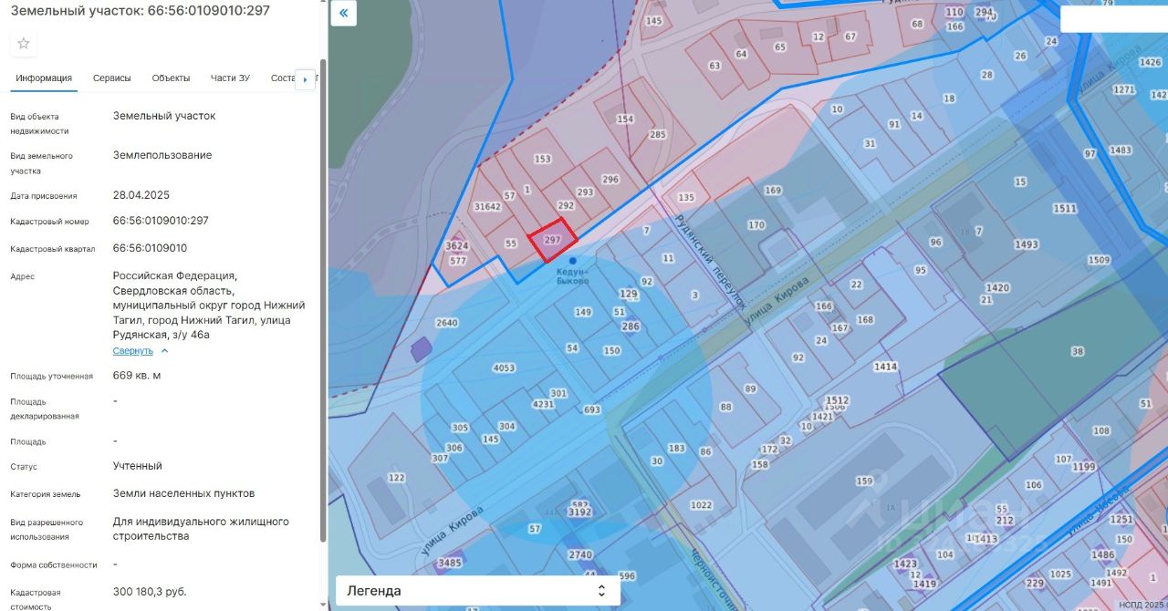 Лот 2. Земельный участок для индивидуального жилищного строительства. Категория земель земли населенных пунктов. Кадастровый номер 66:56:0109010:297. Местоположение: Российская Федерация, Свердловская область, муниципальный округ город Нижний Тагил, город Нижний Тагил, улица Рудянская, з/у 46а. Площадь земельного участка 669 кв. метров. Разрешенное использование земельного участка для индивидуального жилищного строительства. Начальная цена (рыночная стоимость земельного участка) 412 000 (четыреста двенадцать тысяч) рублей. "Шаг аукциона" 20 500 (двадцать тысяч пятьсот) рублей. Размер задатка 82 400 (восемьдесят две тысячи четыреста) рублей