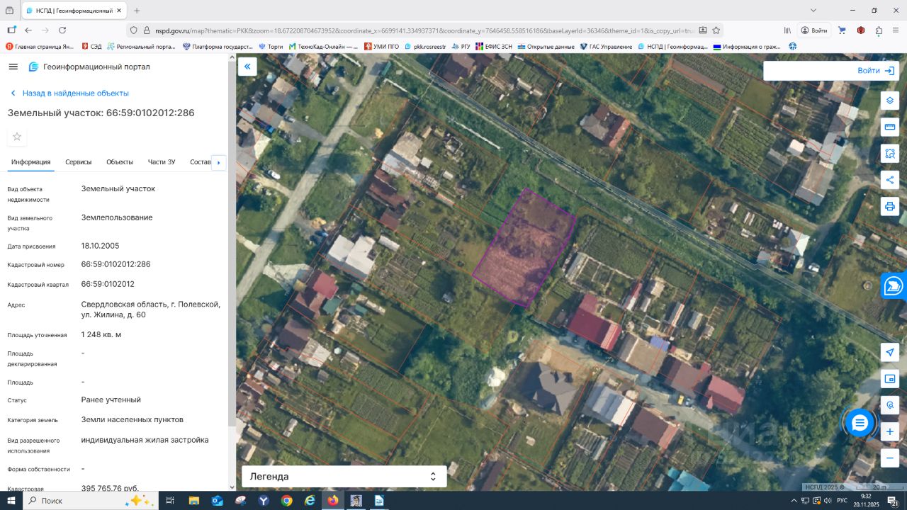 Продажа земельного участка, расположенного по адресу: Свердловская область, город Полевской, улица Жилина, дом, 60, с кадастровым номером 66:59:0102012:286, площадью 1248 кв.м, категория земель земли населенных пунктов, с видом разрешенного использования индивидуальная жилая застройка