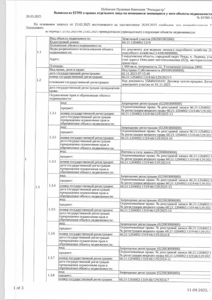 Должник: Гайнуллин В.Э., Собственник: Гайнуллин В.Э. Лот: Земельный участок (земли населенных пунктов, для ведения личного подсобного хозяйства), площадь 1000 кв.м., кадастровый номер: 66:21:1204002:1319, г. Ревда, п. Ледянка, уч. 933, н/ц: 159200 р, з-к: 159 р, код: 0014, рег. 47-2808/25
