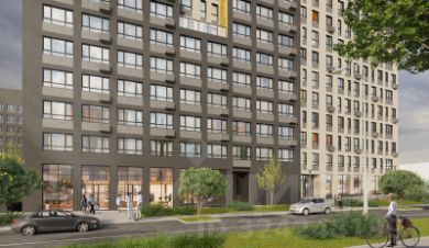 В первой очереди - высотная башня-32 этажа и малоэтажный дом-9 этажей. Внутри - уютное лобби с мягкой зоной, зона рецепции, выход в закрытый двор. С внешней стороны - бытовые сервисы, кафе и магазины "у дома".