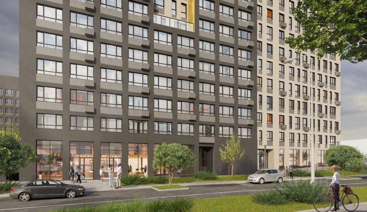 В первой очереди - высотная башня-32 этажа и малоэтажный дом-9 этажей. Внутри - уютное лобби с мягкой зоной, зона рецепции, выход в закрытый двор. С внешней стороны - бытовые сервисы, кафе и магазины "у дома".