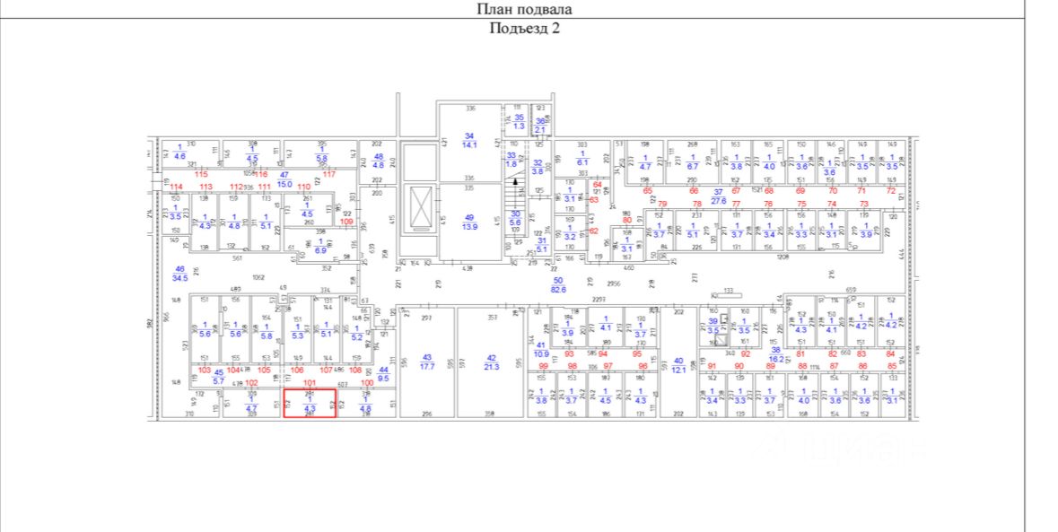 Продам кладовую номер 101, прямой вход с подъезда 2, площадь 4,3 м2.