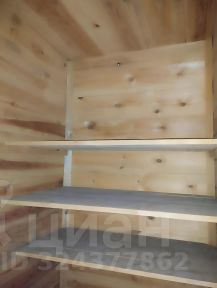 Деревянный пол, полки для хранения под потолком, брезентовые шторы. Оборудована кладовая, расстояние от ворот до кладовки 4,8 метра.