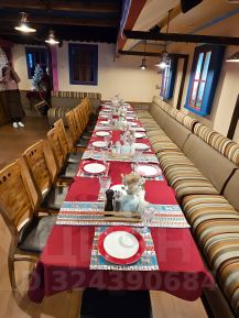 На кухне есть все оборудование. В зале - столы, стулья и др. мебель.