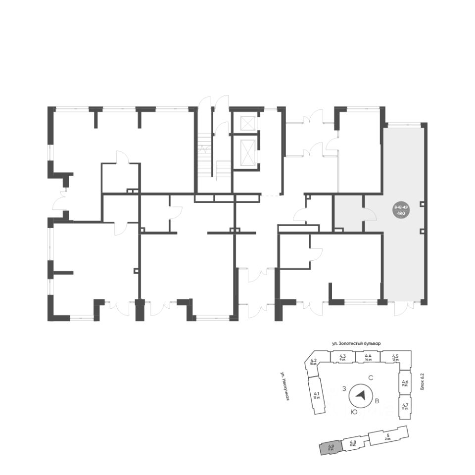 Продается помещение свободного назначения 42, по адресу Свердловская область, г. Екатеринбург, Золотистый бульвар, 18, корпус Солнечный, блок 6.4- встроенные помещения в Солнечный на 1 этаже, с площадью 49 м2.