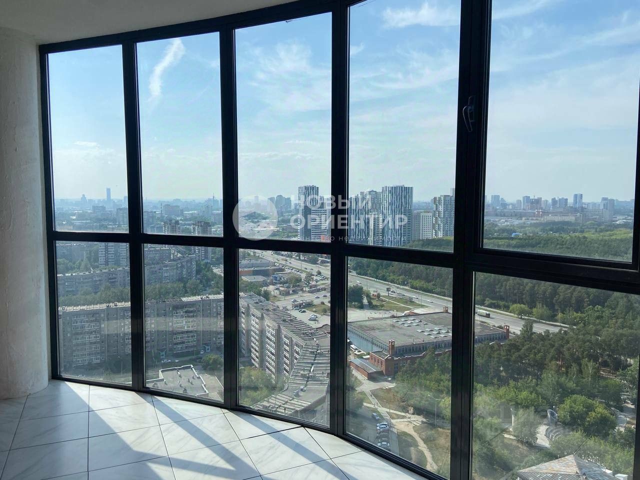 Просторное пространство с панорамными окнами, захватывающий вид на город, лес и озеро подарит вам ощущение свободы и гармонии с природой.