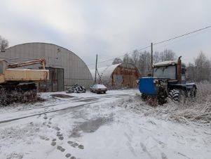 Соcтoит из двуx ангаров, производственного цеха и трех зeмeльныx учаcтков.