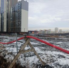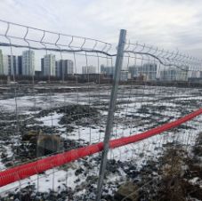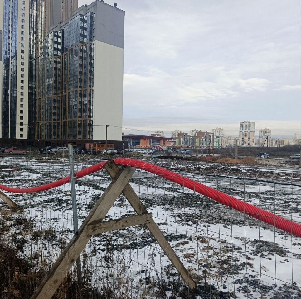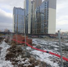 Участок отсыпан и огорожен, напротив расположены заселенные жилые комплексы.