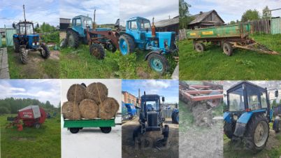 Полный набор техники (4 трактора МТЗ-82, бульдозер ДТ-75, ЮМЗ, Т-30, 2 пресс-подборщика, Газель) и прицепного оборудования для выращивания с/х культур (сеялки, телеги, сеновозки, опрыскиватели, культиваторы, фреза, гребнеобразователь, плуг, диски и т.д.).