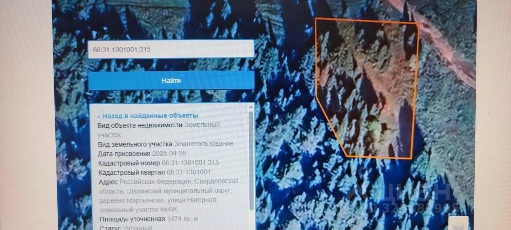 Лот 3 земельный участок с разрешенным использованием: для индивидуального жилищного строительства, с кадастровым номером 66:31:1301001:315, общей площадью 1474,00 кв.м., адрес: Свердловская область, Шалинский муниципальный округ, деревня Мартьяново, улица Нагорная, земельный участок 4Ж.