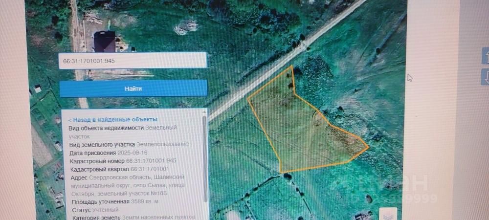 Лот 6 земельный участок с разрешенным использованием: для ведения личного подсобного хозяйства (приусадебный земельный участок), с кадастровым номером 66:31:1701001:945, общей площадью 3589,00 кв.м., адрес: Свердловская область, Шалинский муниципальный округ, село Сылва, улица Октября, земельный участок 18Б.