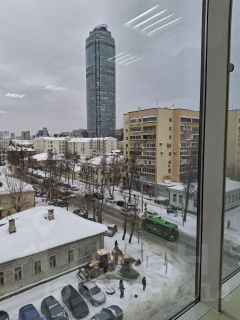 Oфиc пустой. Окна выходят в сторону Новотеля, вид в сторону Малышева. Мокрой точки нет. Санузел на этаже.