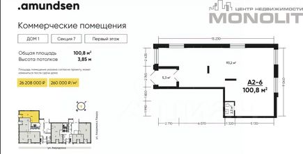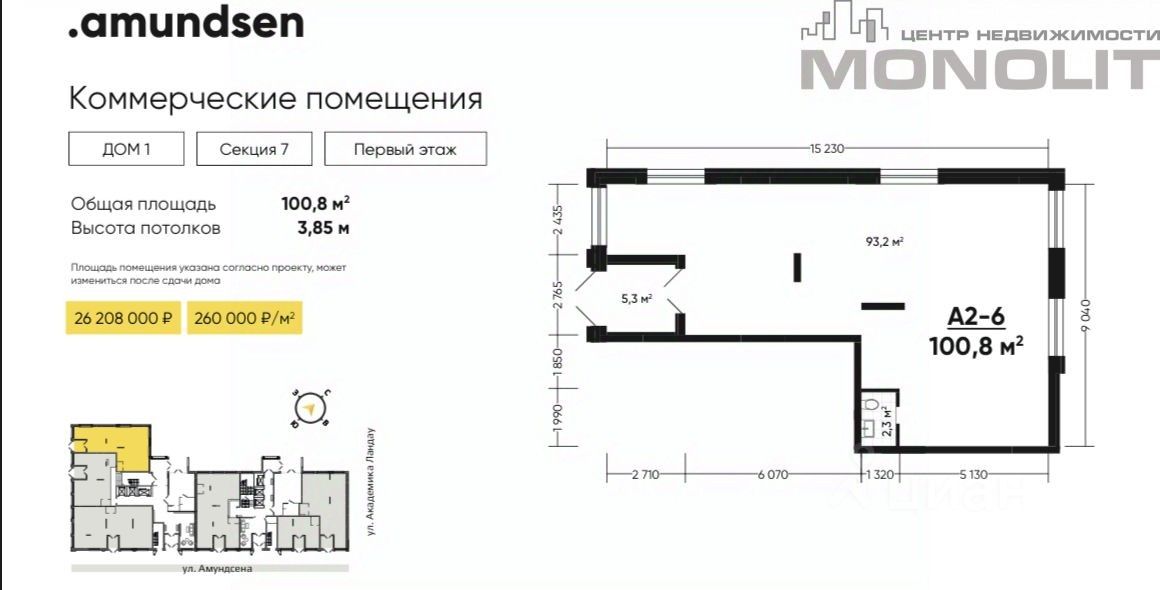 Предлагается в покупку торговое помещение, расположенное в Жилом комплексе AMUNDSEN по адресу: