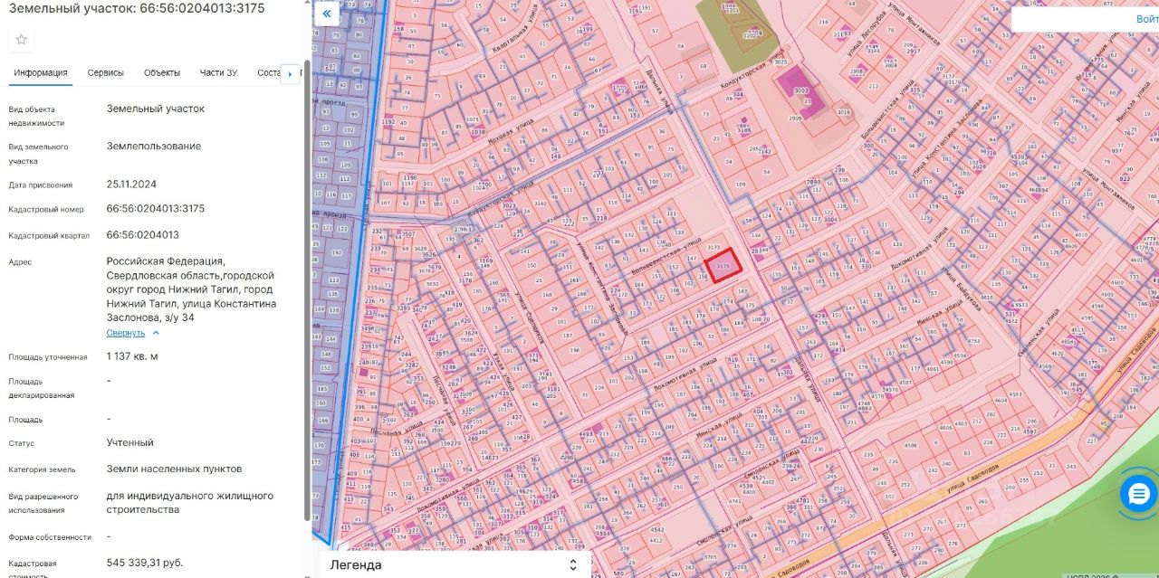 Лот 3. Земельный участок для индивидуального жилищного строительства. Категория земель земли населенных пунктов. Кадастровый номер 66:56:0204013:3175. Местоположение: Российская Федерация, Свердловская область, городской округ город Нижний Тагил, город Нижний Тагил, улица Константина Заслонова, з/у 34. Площадь земельного участка 1137 кв. метров. Разрешенное использование земельного участка для индивидуального жилищного строительства. Начальная цена (кадастровая стоимость земельного участка) 545 339 (пятьсот сорок пять тысяч триста тридцать девять) рублей 31 копейка. "Шаг аукциона" 27 200 (двадцать семь тысяч двести) рублей. Размер задатка 109 100 (сто девять тысяч сто) рублей