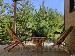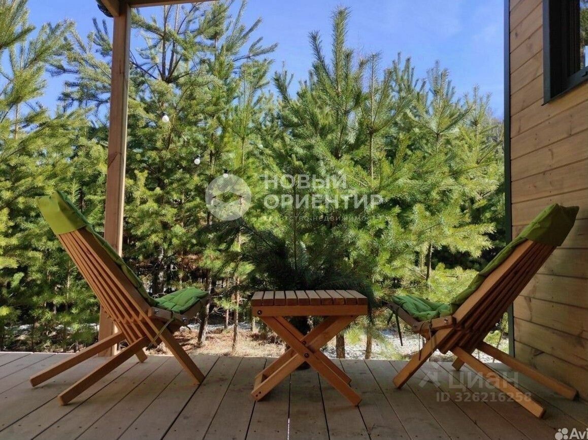 На участке комлекс: дом с панорамными окнами, спальней и баня на общей террасе. Общей площадью 60 кв.м. Фундамент-сваи.