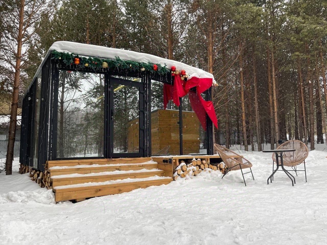 Уютная Баня. Парилка свободно вмещает 4 человека. Предбанник с панорамным окном с Видом на ЛЕС.