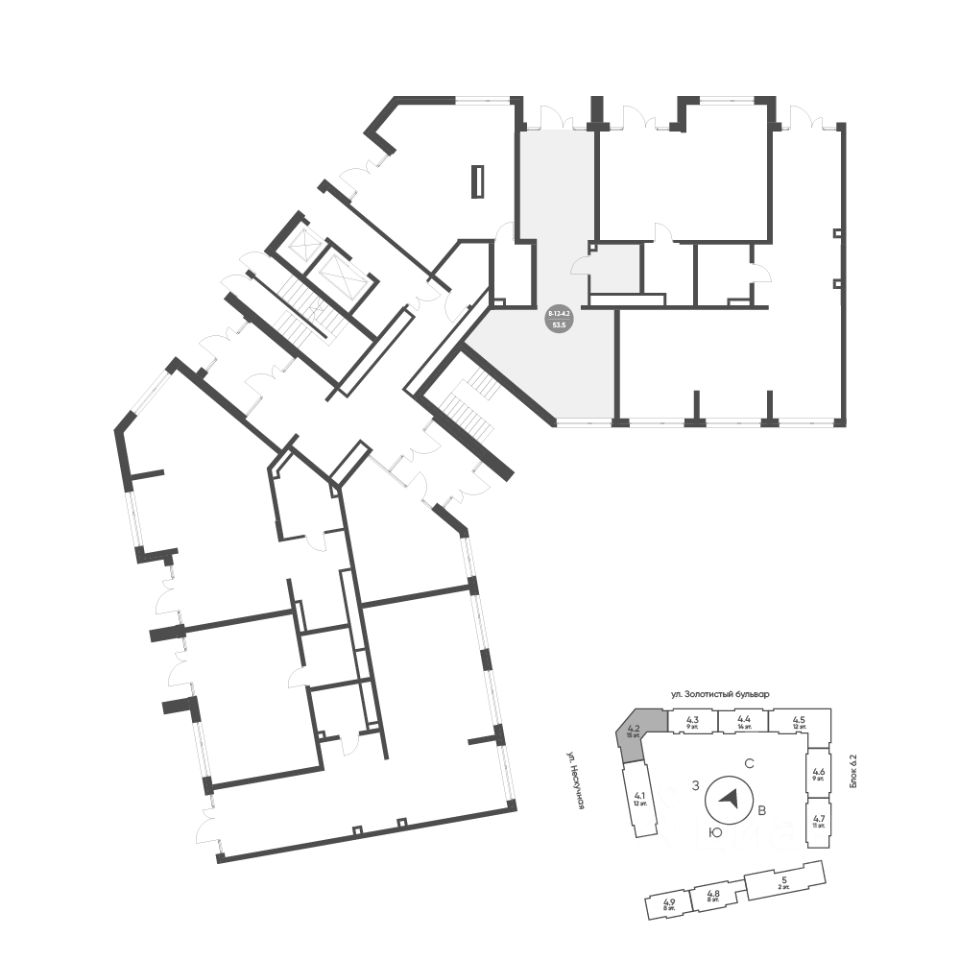 Продается помещение свободного назначения 12, по адресу Свердловская область, г. Екатеринбург, Золотистый бульвар, 18, корпус Солнечный, блок 6.4- встроенные помещения в Солнечный на 1 этаже, с площадью 53.5 м2.