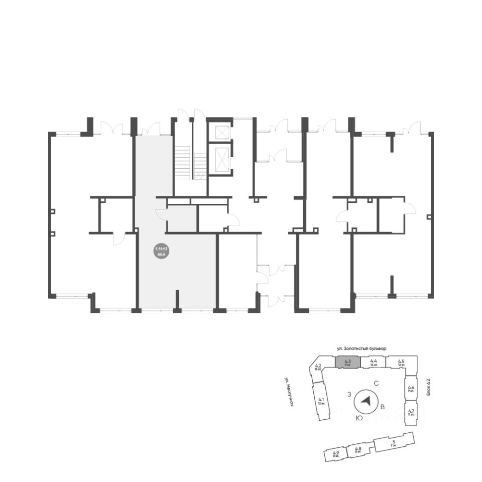 Продается помещение свободного назначения 16, по адресу Свердловская область, г. Екатеринбург, Золотистый бульвар, 18, корпус Солнечный, блок 6.4- встроенные помещения в Солнечный на 1 этаже, с площадью 66.6 м2.