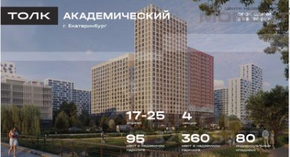 Жилой комплекс "Толк Академический" представляет собой современное монолитно-кирпичное здание с переменной этажностью ( 17-25 этажей), удобно расположенное между улицами Академика Парина и Ландау. На территории комплекса планируется обустройство детских и спортивных площадок, а также озеленение для создания комфортной и приятной обстановки для жильцов.