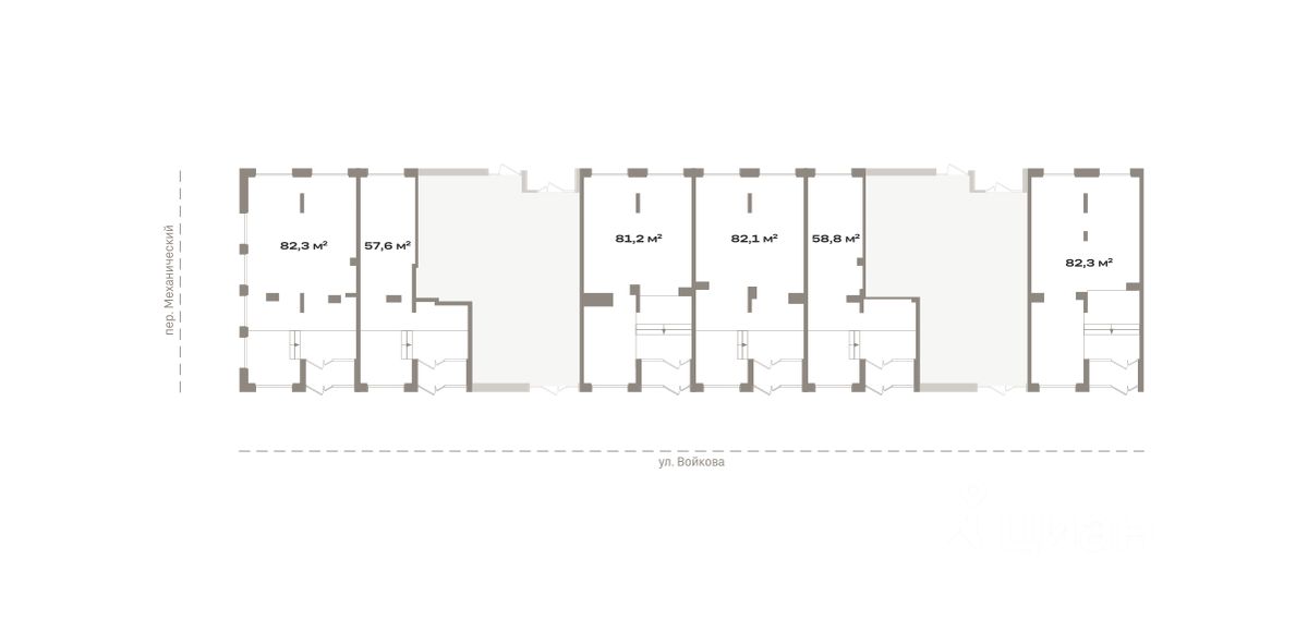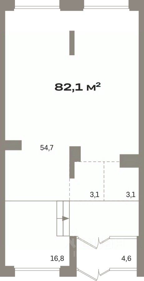 Помещение свободного назначения на 1 этаже, общая площадь 82.14 кв.м., без отделки. Стоимость помещения 18,570,000 руб., цена за кв.м 226,077 руб.