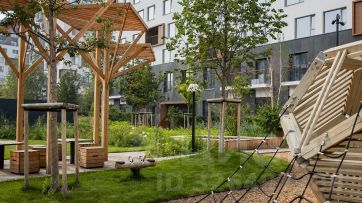Проект благоустройства связывает приватные дворы кварталов, парковое пространство вокруг урбан-вилл, игровые комплексы для детей разных возрастов и спортивные площадки в единый ландшафт. Внутриквартальный двор тихий и спокойный. За счёт разной этажности и арок во дворе — много света. Здесь будет высажено до 40 видов растений — деревья, кустарники, цветы, злаковые травы и газон. Деревья привезут уже взрослыми со сформированной кроной. Растения цветут в разное время года, имеют разную плотность и высоту. Всё это сделано для того, чтобы двор был разнообразным и в каждое время года имел свой цвет.