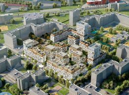 Оживлённое уличное движение останется за пределами квартала, а внутри создается собственная природная среда с зонами для вечерних прогулок, расслабленного отдыха, спорта и игр. Между домов проходит широкий пешеходный бульвар с разнообразным ландшафтом. Он объединяет общественные пространства между кварталами и переходит в площадь-сквер с фонтаном.
