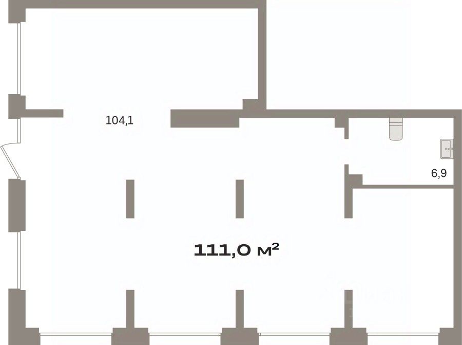 Помещение свободного назначения на 1 этаже, общая площадь 111.03 кв.м., без отделки. Стоимость помещения 21,470,000 руб., цена за кв.м 193,371 руб.