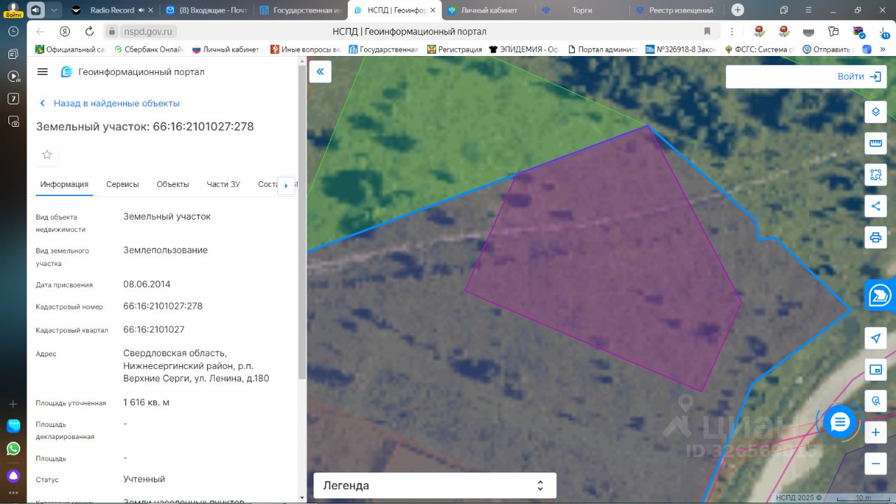 Продажа земельного участка, с кадастровым номером 66:16:2101027:278, (категория земель - земли населенных пунктов), расположенного по адресу: Свердловская область, Нижнесергинский район, пгт. Верхние Серги, ул. Ленина, дом 180, общей площадью 1 616 кв.м, разрешенное использование для индивидуального жилищного строительства