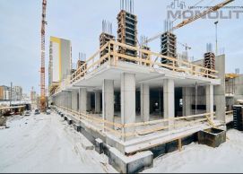 Коммерческие помещения будут располагаться в надземном паркинге на пересечении улиц Академика Ландау и Амундсена.