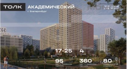 Жилой комплекс "Толк Академический" представляет собой современное монолитно-кирпичное здание с переменной этажностью ( 17-25 этажей), удобно расположенное между улицами Академика Парина и Ландау. На территории комплекса планируется обустройство детских и спортивных площадок, а также озеленение для создания комфортной и приятной обстановки для жильцов.