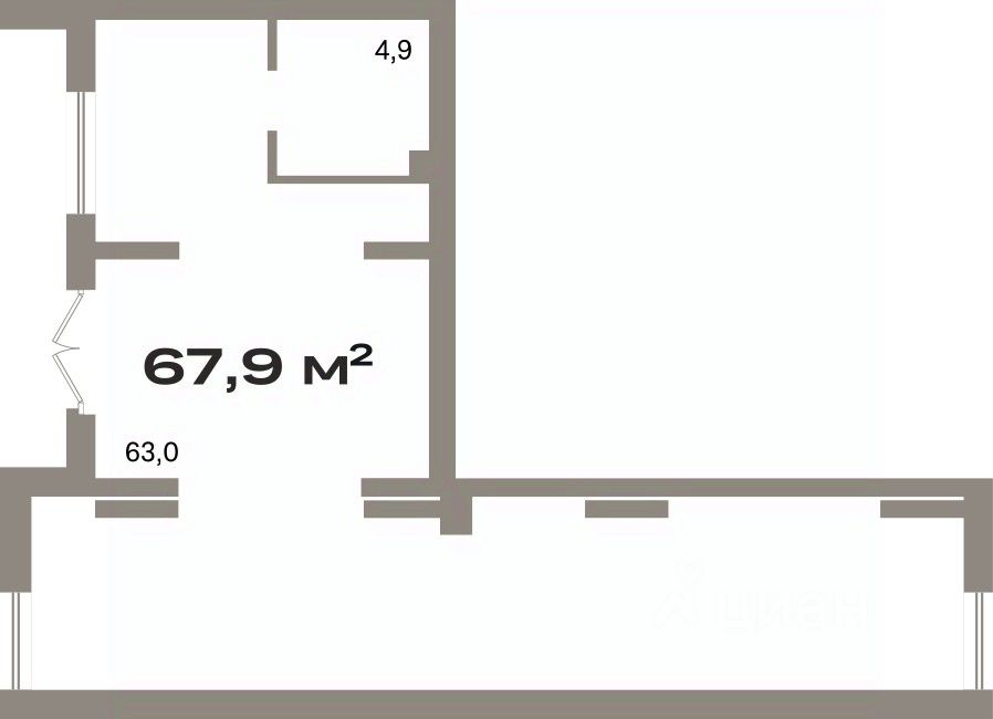 Помещение свободного назначения на 1 этаже, общая площадь 67.92 кв.м., без отделки. Стоимость помещения 16,010,000 руб., цена за кв.м 235,718 руб.