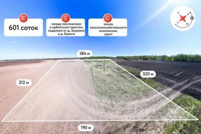 Продается земельный участок 600 сот, правильной прямоугольной формы, межевание выполнено. Категория земель - земли сельскохозяйственного назначения, вид разрешенного использования - для сельскохозяйственного производства. Находится юго-восточнее д. Полушина: между Московским и Ирбитским трактами, недалеко от д. Зырянка и Кулиги. Доехать можно как по Московскому, так и по Ирбитскому трактам. Участок расположен в экологически чистом районе, в живописном месте, поблизости река Кармак и лесной массив. От трассы до участка проходит грунтовая дорога. Звоните!