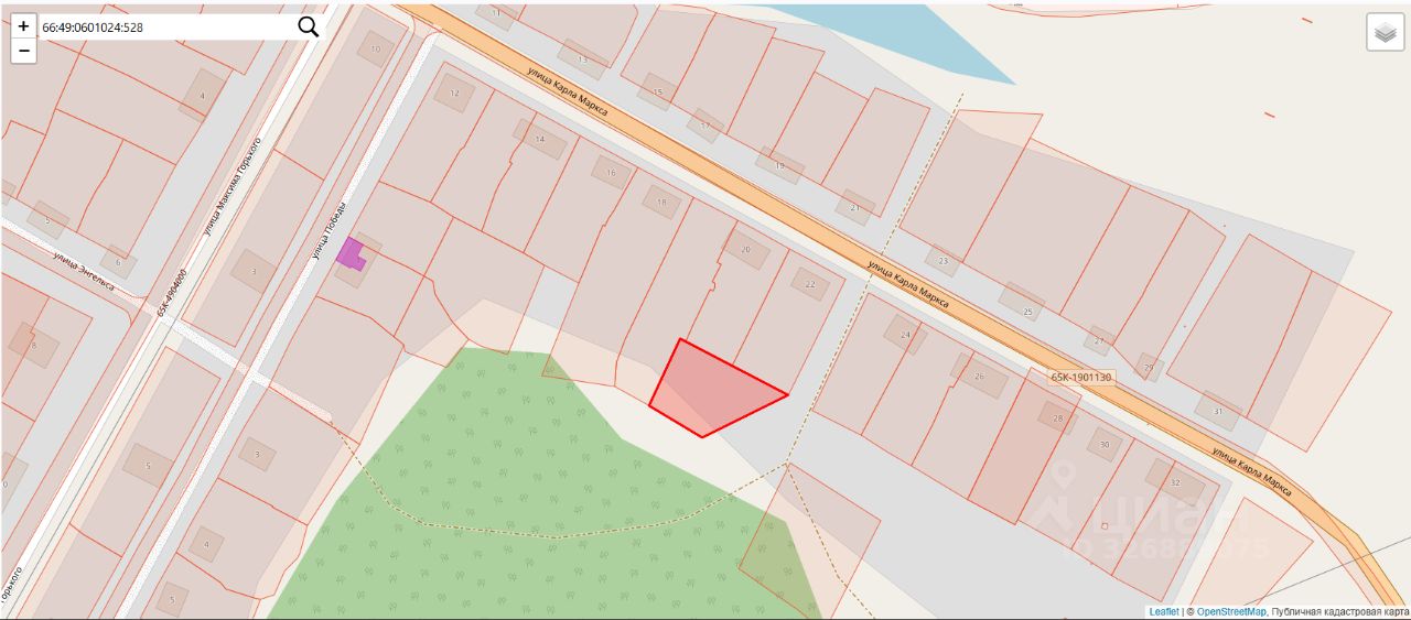 Земельный участок с кадастровым номером 66:49:0601024:528, общей площадью 1081,0 квадратных метров, местоположение: Свердловская обл., г. Кировград, поселок Нейво - Рудянка, ул. Карла Маркса, участок 22А