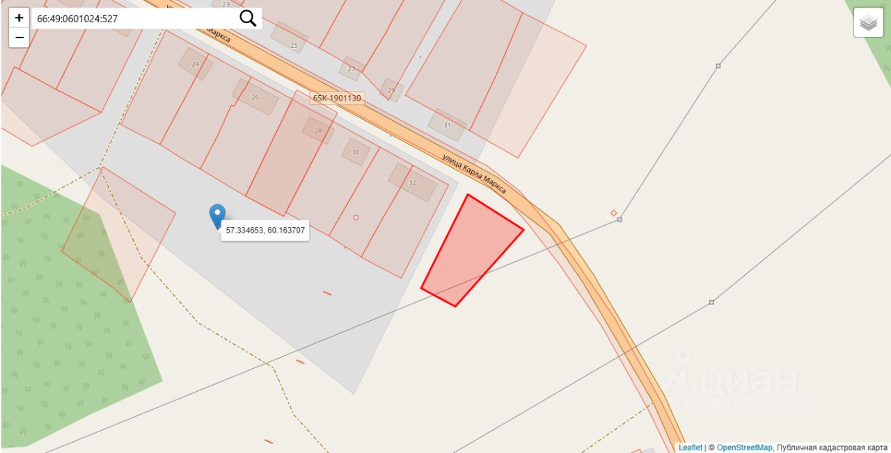 Земельный участок с кадастровым номером 66:49:0601024:527, общей площадью 1300,0 квадратных метров, местоположение: Свердловская обл., г. Кировград, поселок Нейво - Рудянка, ул. Карла Маркса, участок 34