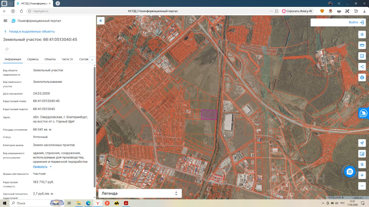 Продается участок(собственность) 66:41:0513040:45 площадью 6 80 41 кв. м, категория земли населенных пунктов, вид разрешенного использования здания, строения, сооружения, используемые для производства, хранения и первичной переработки сельскохозяйственной продукции. Находиться в производственной зоне, инженерной и транспортной инфраструктуры.