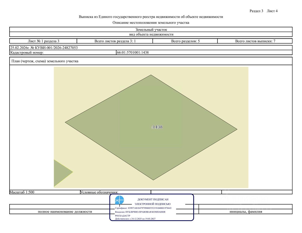 Земельный участок с кадастровым номером 66:01:5701001:1438, местоположение: Российская Федерация, Свердловская область, Алапаевский район, с. Раскатиха, примерно в 120 метрах на юг от дома 11 по ул. Красных Орлов, вид разрешенного использования - для ведения личного подсобного хозяйства (приусадебный земельный участок), цель использования ведение личного подсобного хозяйства в границах населенного пункта, площадь 1 999 кв. м