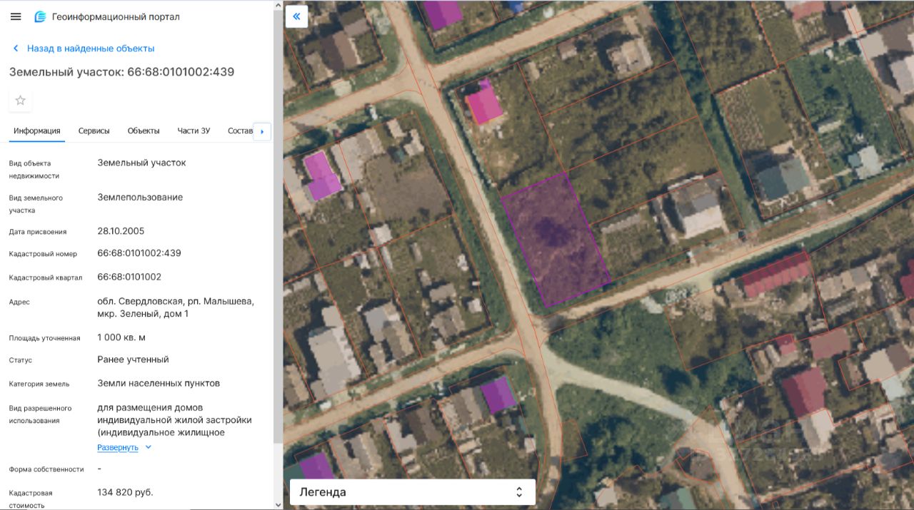 Земельный участок с кадастровым номером 66:68:0101002:439, площадью 1000,0 кв.м., разрешенное использование: для индивидуального жилищного строительства