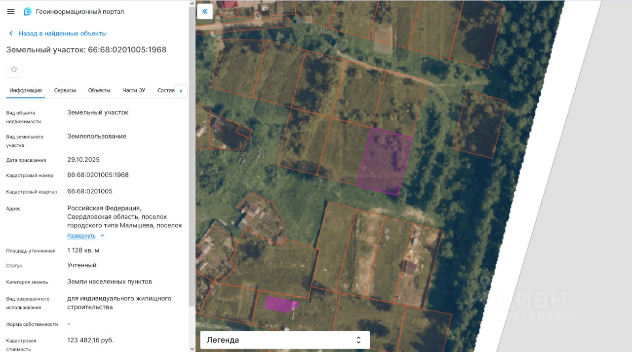 Земельный участок с кадастровым номером 66:68:0201005:1968, площадью 1128,0 кв.м., разрешенное использование: для индивидуального жилищного строительства, категория земель земли населенных пунктов, местоположение: Свердловская область, пгт. Малышева, п. Изумруд, мкр. Садовый, д. 18