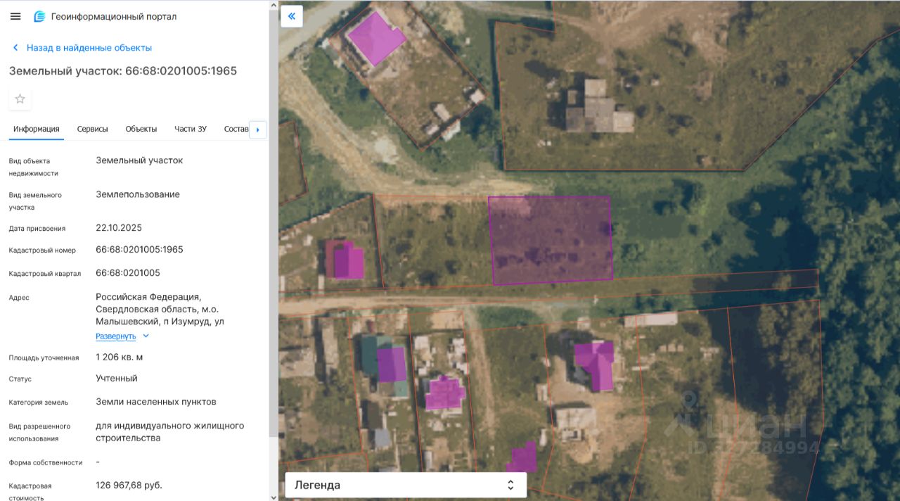 Земельный участок с кадастровым номером 66:68:0201005:1965, площадью 1206,0 кв.м., разрешенное использование: для индивидуального жилищного строительства, категория земель земли населенных пунктов, местоположение: Свердловская область, пгт. Малышева, п. Изумруд, ул. Садовая 5-я, д. 16а