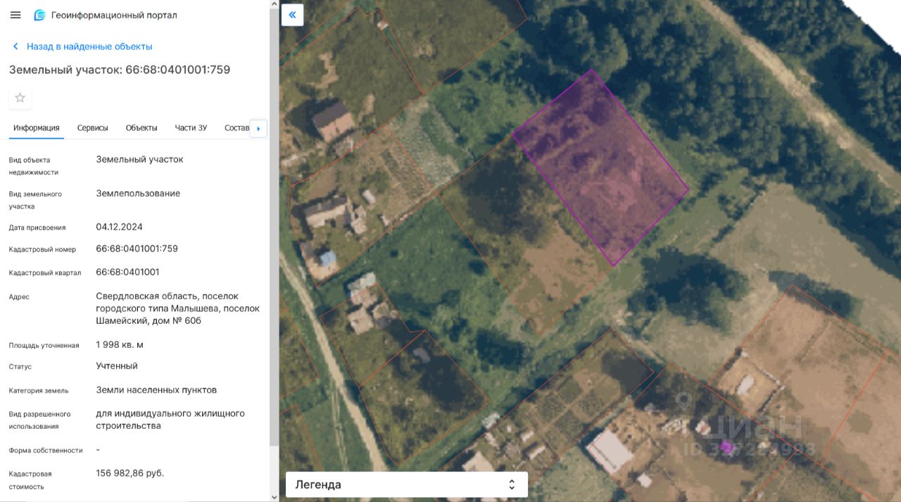 Земельный участок с кадастровым номером 66:68:0401001:759, площадью 1998,0 кв.м., разрешенное использование: для индивидуального жилищного строительства, категория земель земли населенных пунктов