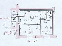 Внутри помещения стены не несущие, возможна любая перепланировка. Сейчас три комнаты и один санузел.