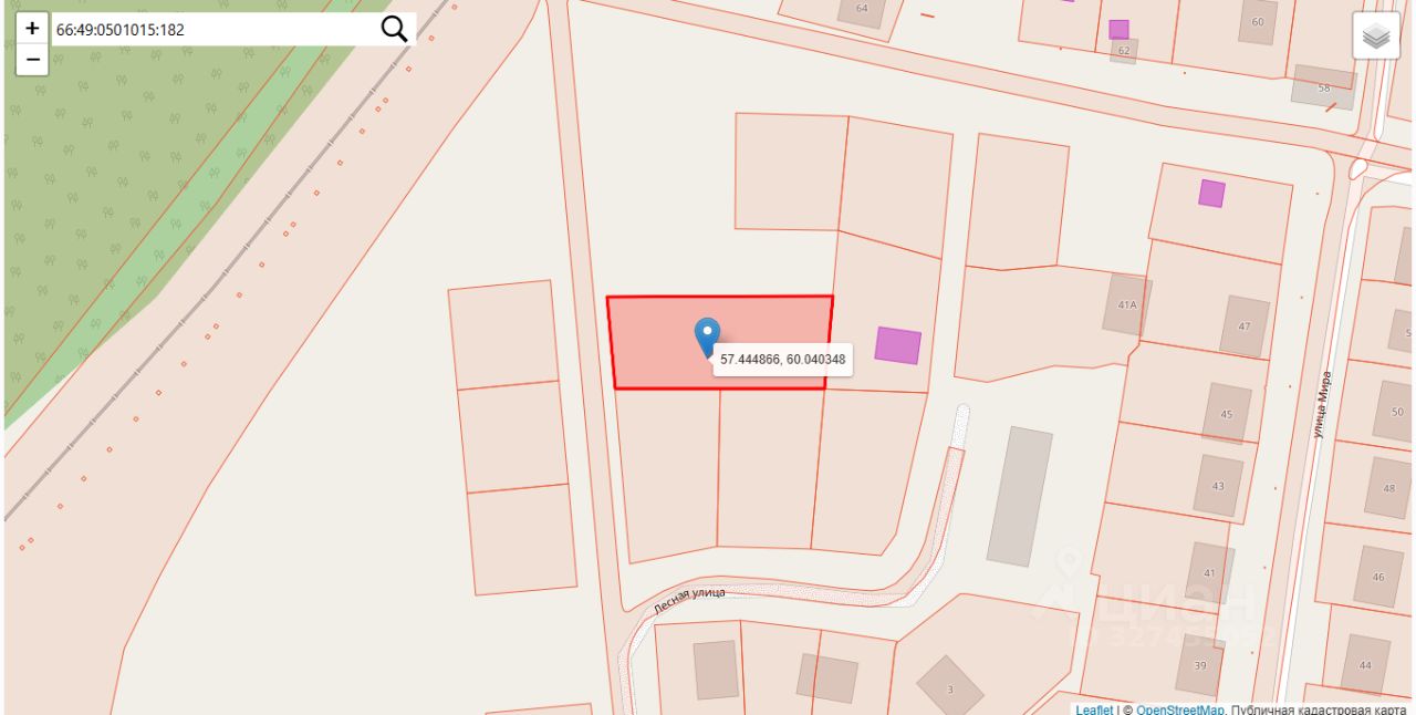 Земельный участок с кадастровым номером 66:49:0501015:182, общей площадью 1923,0 квадратных метров, местоположение: Свердловская область, город Кировград, улица Лесная, участок 12