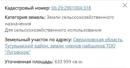 Продается участок кадастровый номер земля с/х 66:29:2901004:318. участок граничит в асфальтированной дорогой, последние два года не обрабатывался.